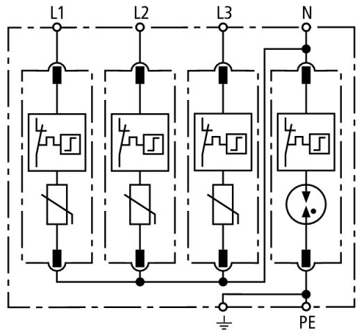 Модульный ограничитель перенапряжений для систем TT и TN-S (схема подключения "3+1").