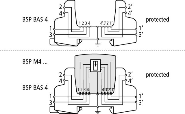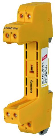 Базовый элемент BLITZDUCTOR SP для применения в качестве компактной 4-х полюсной универсальной проходной клеммы для установки модулей УЗИП спрерыванием сигнала при замене модуля. Модули УЗИП надежно заземляются через крепление на DIN-рейку при помощи фиксирующего устройства с защелкой. Так как в базовом элементе нет защитных цепей, работы по обслуживанию требуются только для модулей УЗИП.