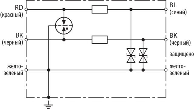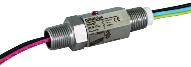 Энергетически скоординированое двухступенчатое УЗИП с газовым разрядником и диодами относительно земли. Для несимметричных интерфейсов с внешней резьбой 1/2'- 14 NPT (внутренняя/внешняя). Проходной заземляющий проводник.